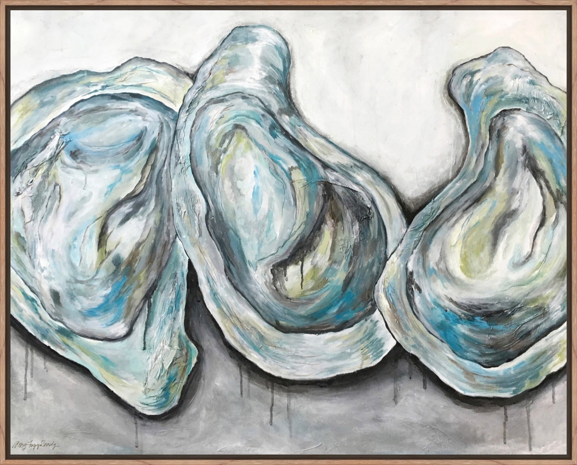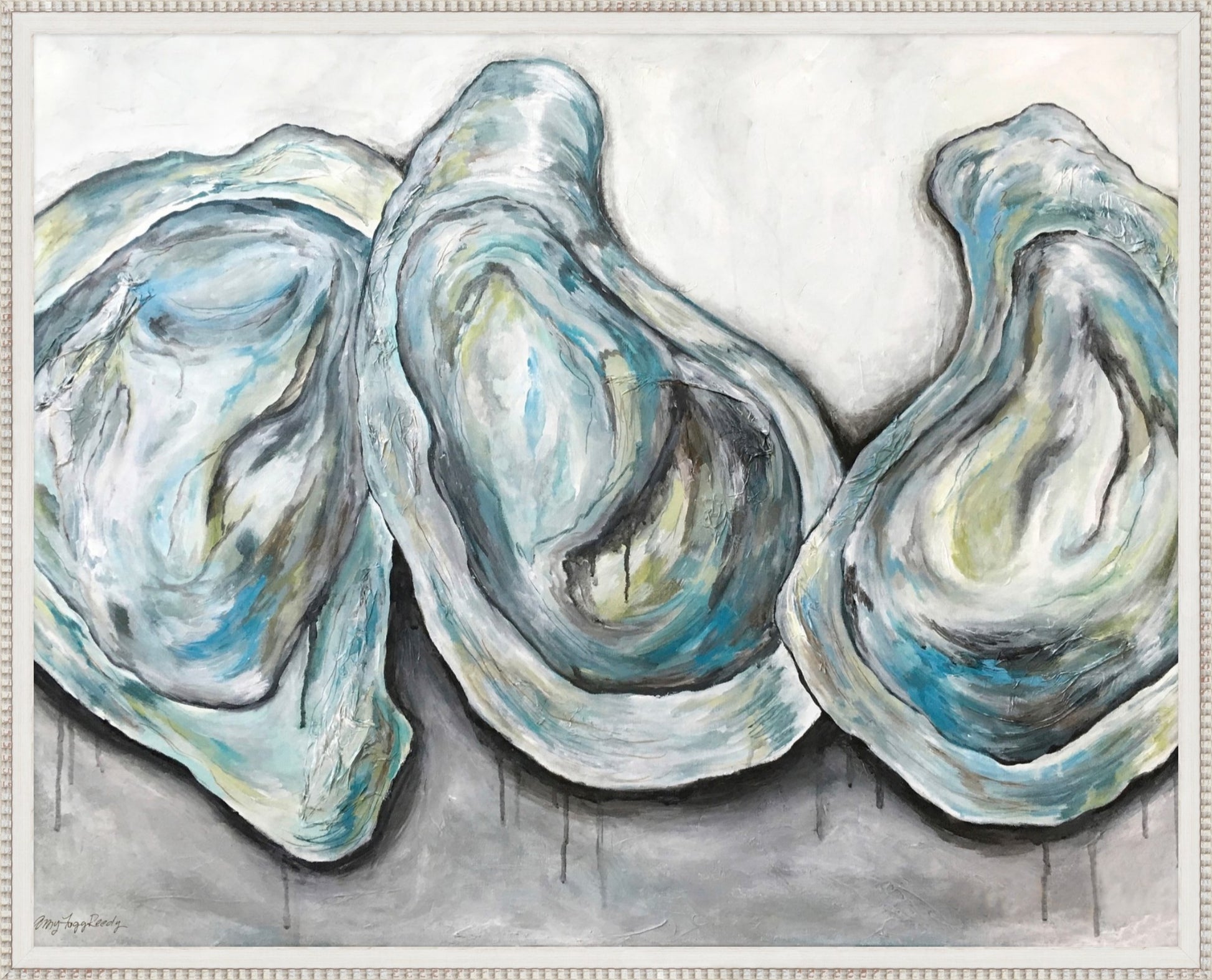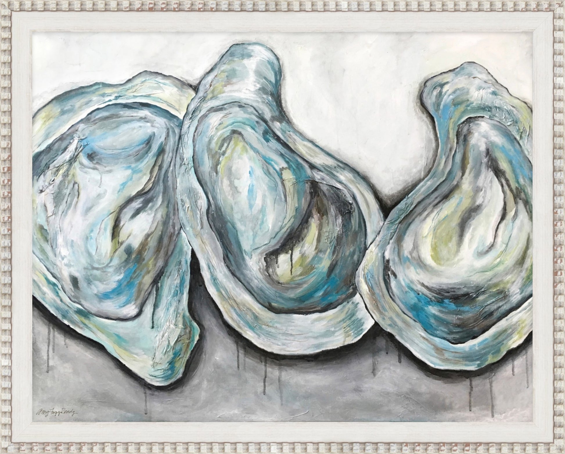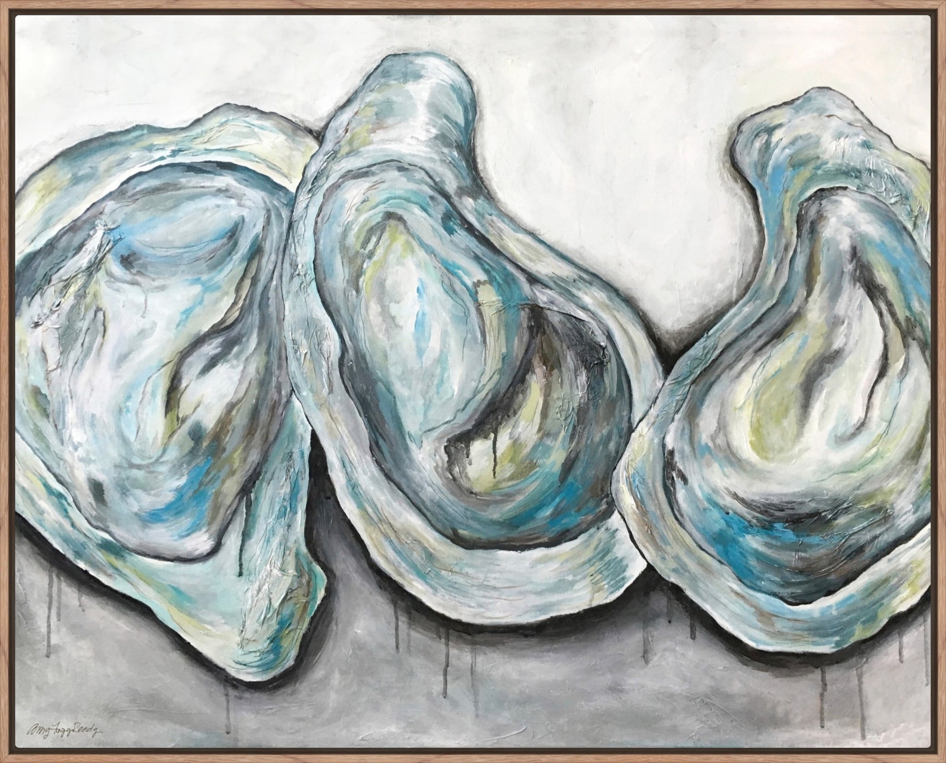 When Amy Fogg Reedy's family of four became three, she found an unexpected metaphor in the oyster—a creature that transforms challenge into something luminous. This trio represents Amy and her two children moving forward together through change.