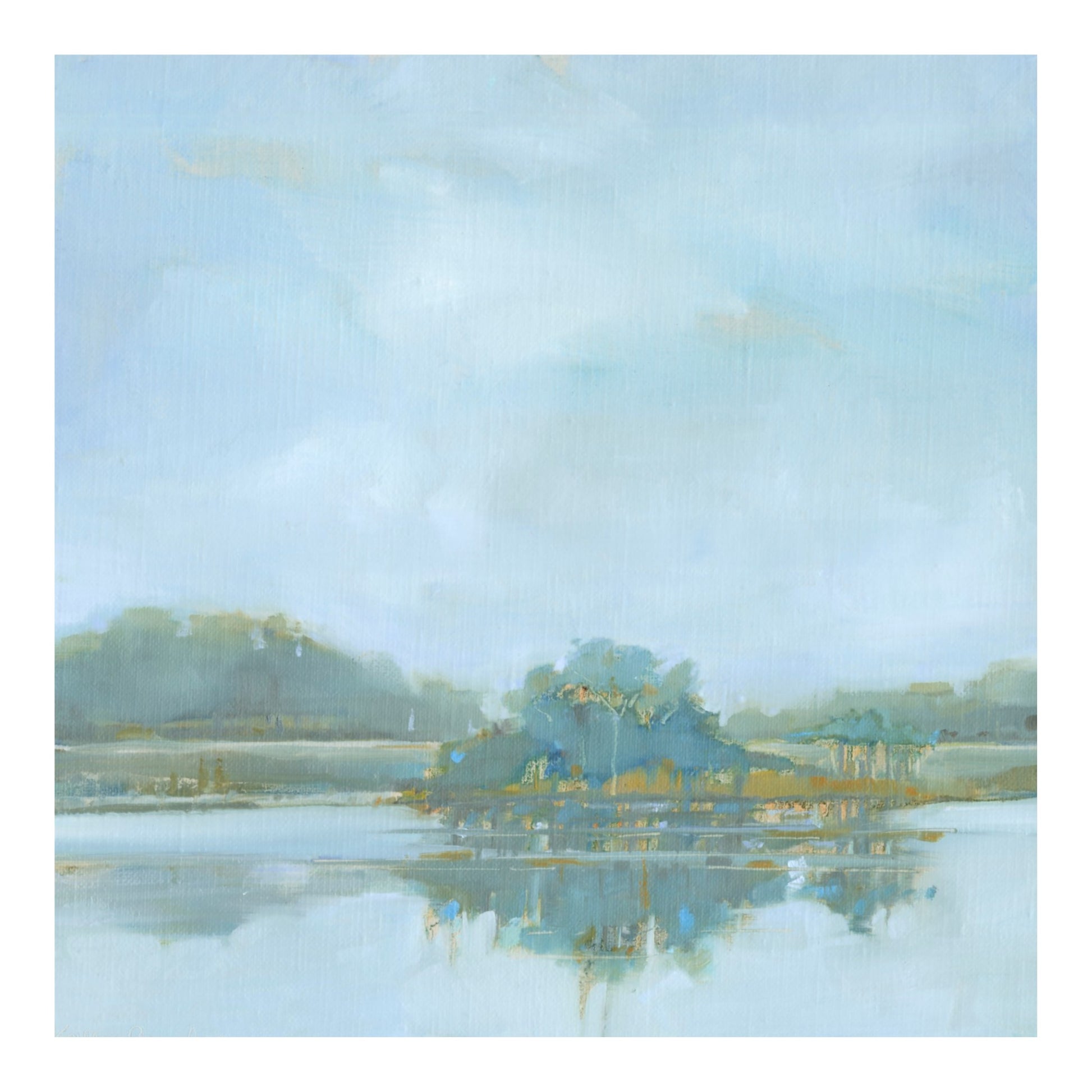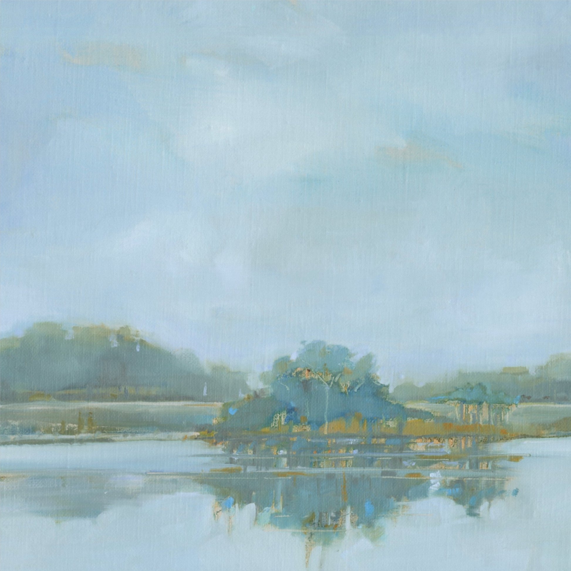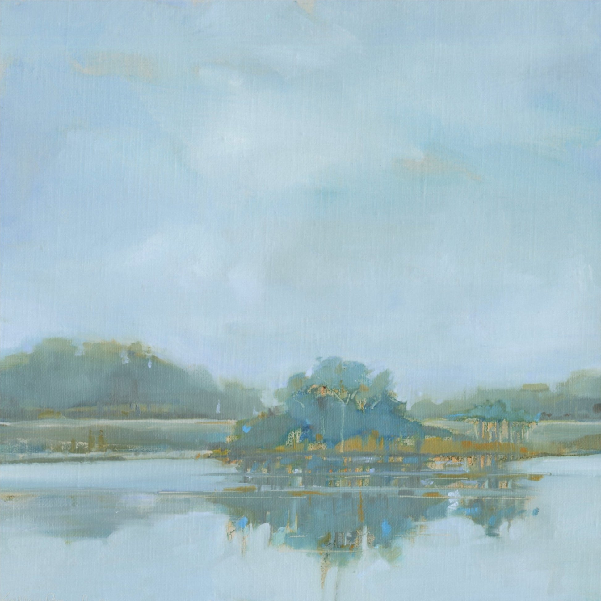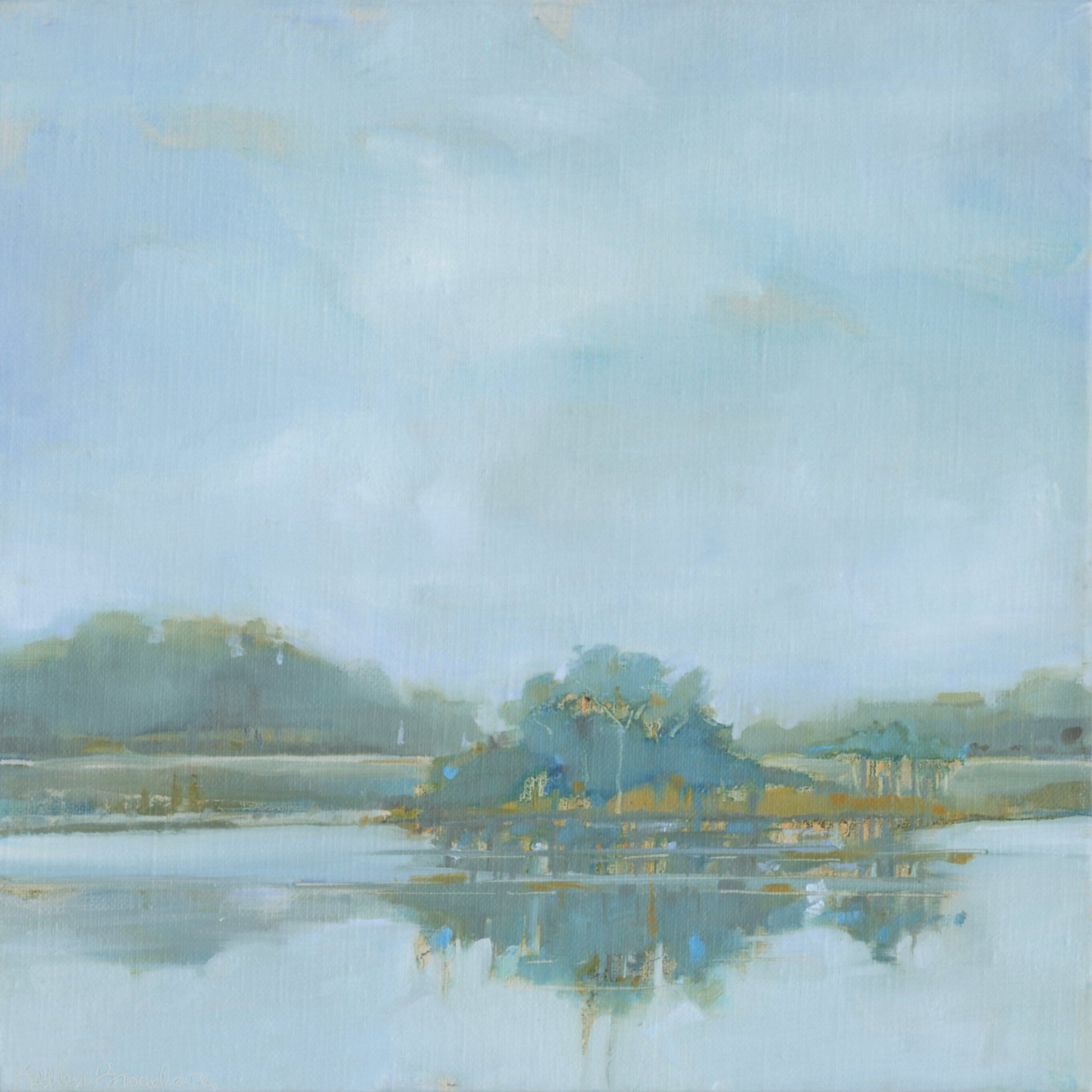 I would drive down County Highway 30a on my way to my studio, CHROMA, every day, and always remind myself to look carefully and not become too accustomed to the beauty. On a foggy morning in March 2020, I was looking carefully and not seeing much. I drove past Allen Lake. It too was in fog, but a lovely tree stand in the middle of the lake stood out. I thought for a minute and turned the car around, stopped at Stinky’s Fish Camp, and took some photos of the lake. Later in the studio, I looked back at the photos and cropped one that looked promising. It wasn’t dramatic but there was something about it. Could I translate this beautiful foggy feeling into a painting? I saw it. And so it came to be part of the coastal dune lakes collection.