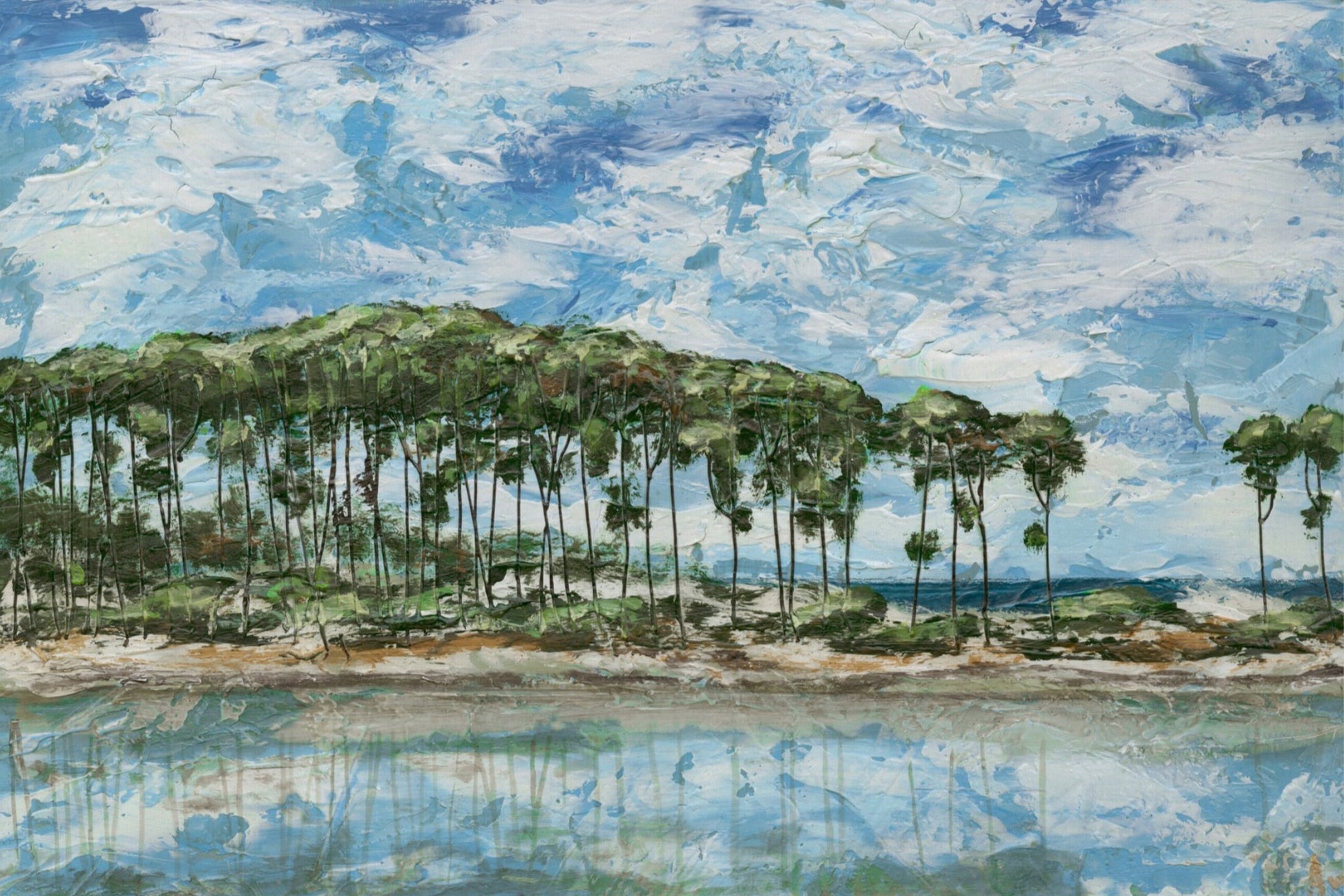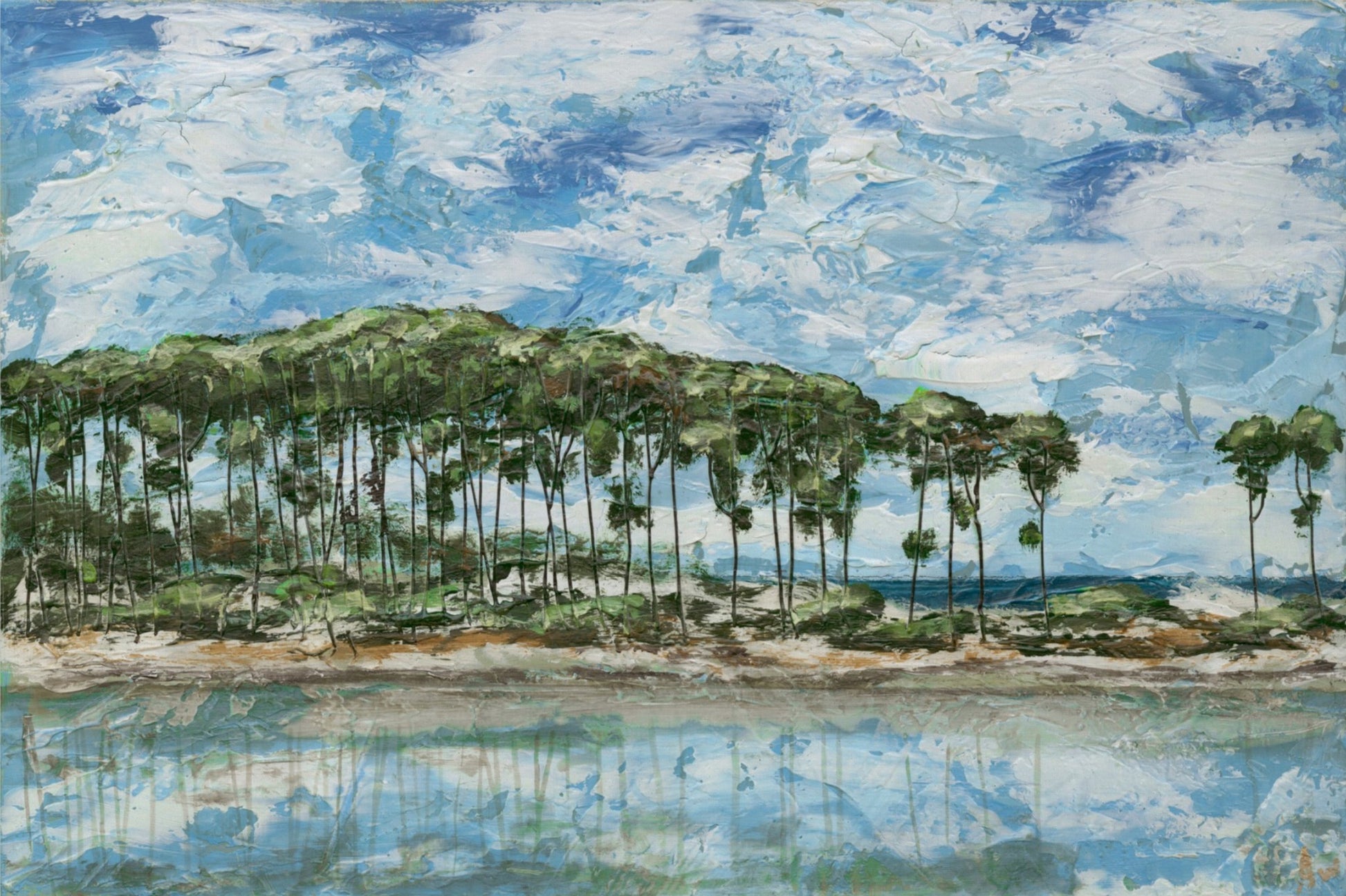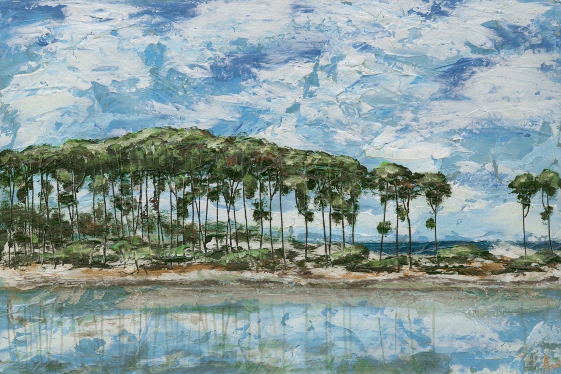 Western Lake is 30A's most iconic landmark—one of only fifteen rare coastal dune lakes in the world where freshwater meets the Gulf. Allison captures the delicate drama of this protected ecosystem with expressive brushwork, translating the lake's shifting moods into layers of aqueous blues and vibrant greens.