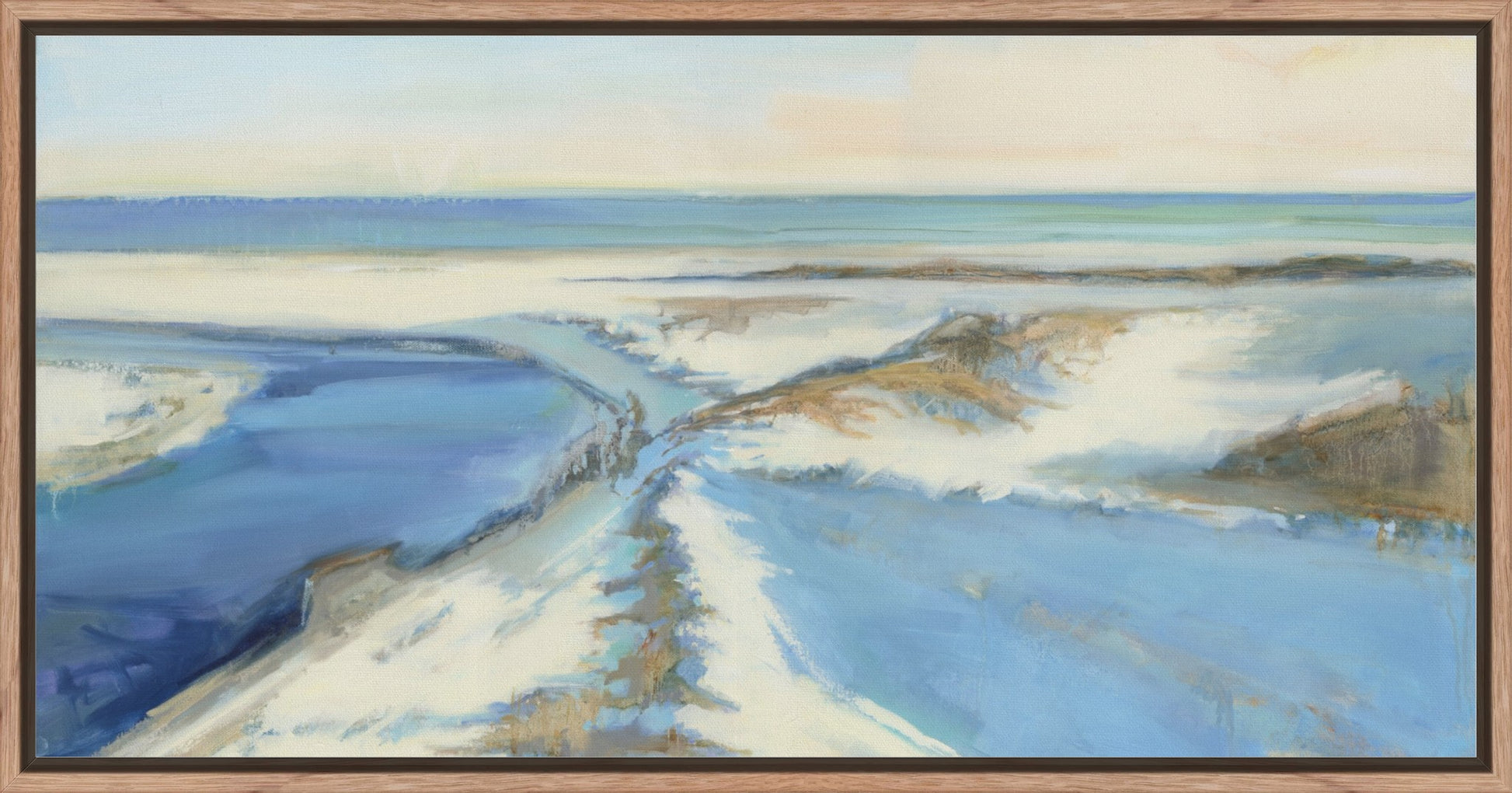 4- Stretched Canvas with Natural Wood Floater Frame - The same gallery-wrapped canvas set inside a natural ash wood floater frame for a clean, polished look.