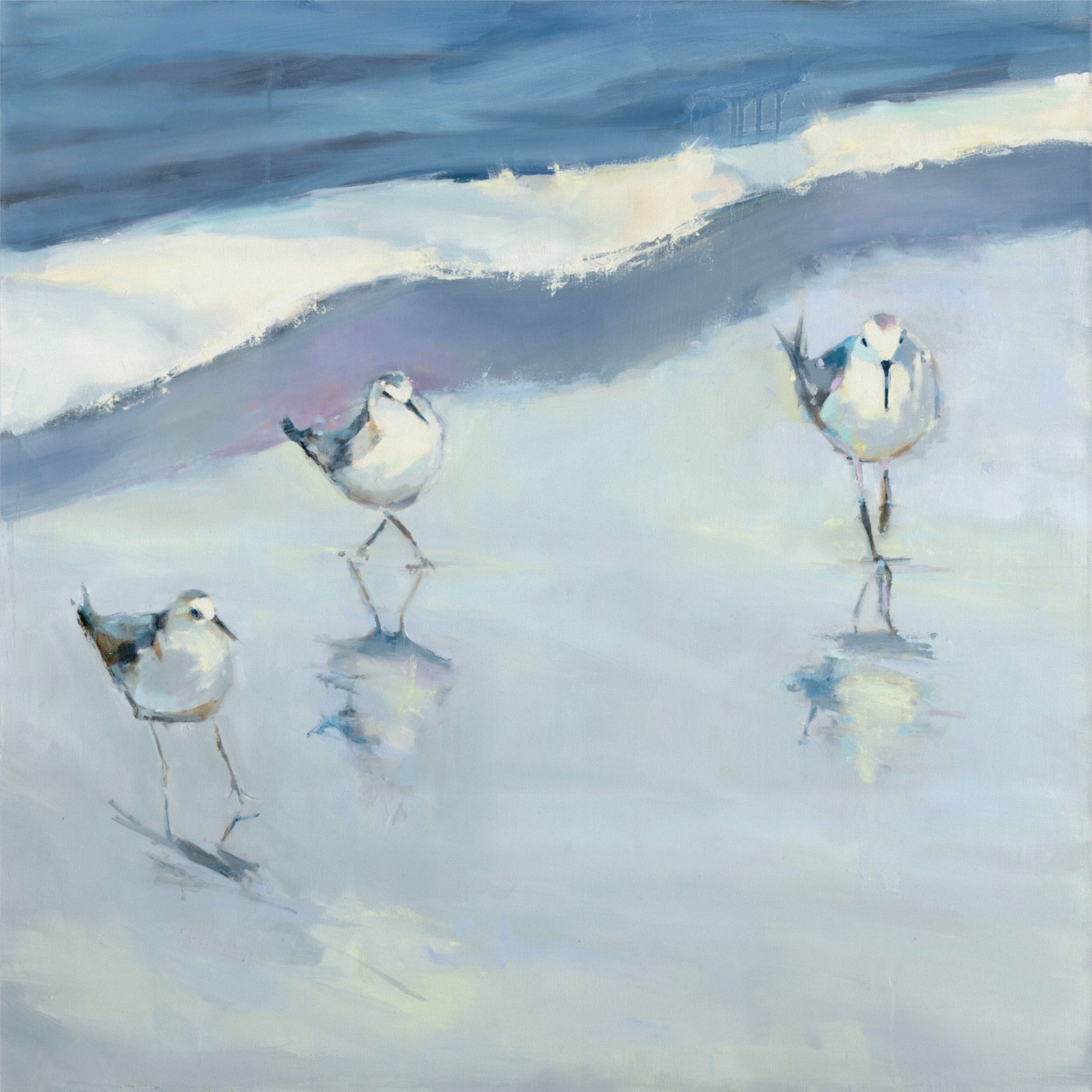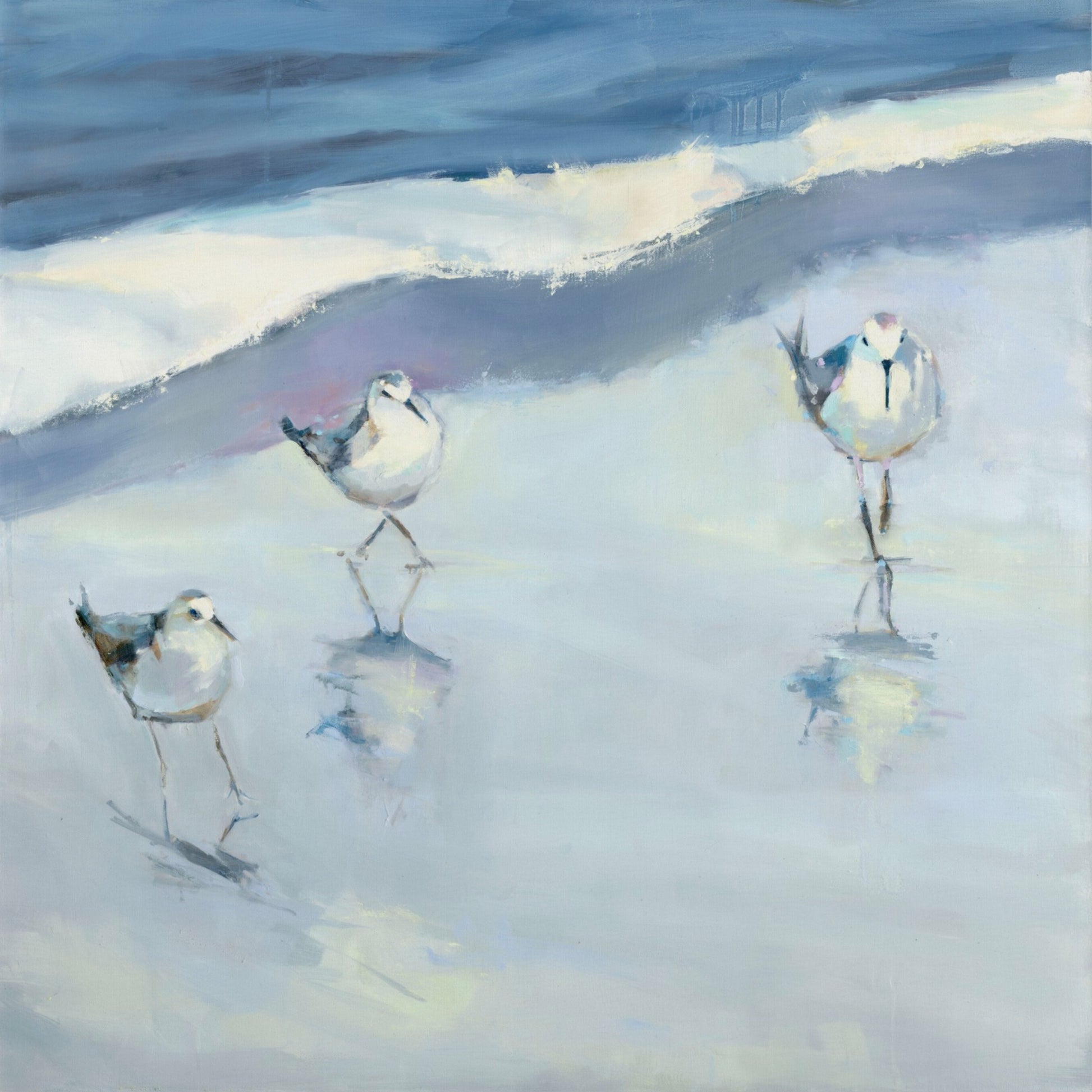This painting catches three of them hanging out along the coast. I kept the colors cool—lots of blues with some lavender mixed in—because that's what I saw in the light.
